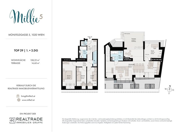 Das neu ausgebaute Dachgeschoß unserer Millie 5 ist das Highlight des Wohnprojektes. 5 Wohnungen, 3 davon auf 2 Ebenen bieten einen wunderbaren Weit und Ausblick! Wohnen mitten im Zentrum mit Aussicht auf die Innenstadt. Großzügig gestaltetete Fensterfronten, praktische Raumaufteilung sowie mindestens 2 Sanitärräume bieten genügend Platz zur individuellen Entfaltung und ermöglichen einen hervorragenden Wohnkomfort. Natürlich bieten Freiflächen wie Terrassen oder Loggien die Möglichkeit zu verweilen und den grünen Daumen zu fördern. Mit 4-5 Zimmern garantieren die neuen Dachgeschoßwohnungen ein Wohnerlebnis für Großfamilien oder auch Paaren, die den Wunsch nach Freiraum und individueller Zimmergestaltung haben.