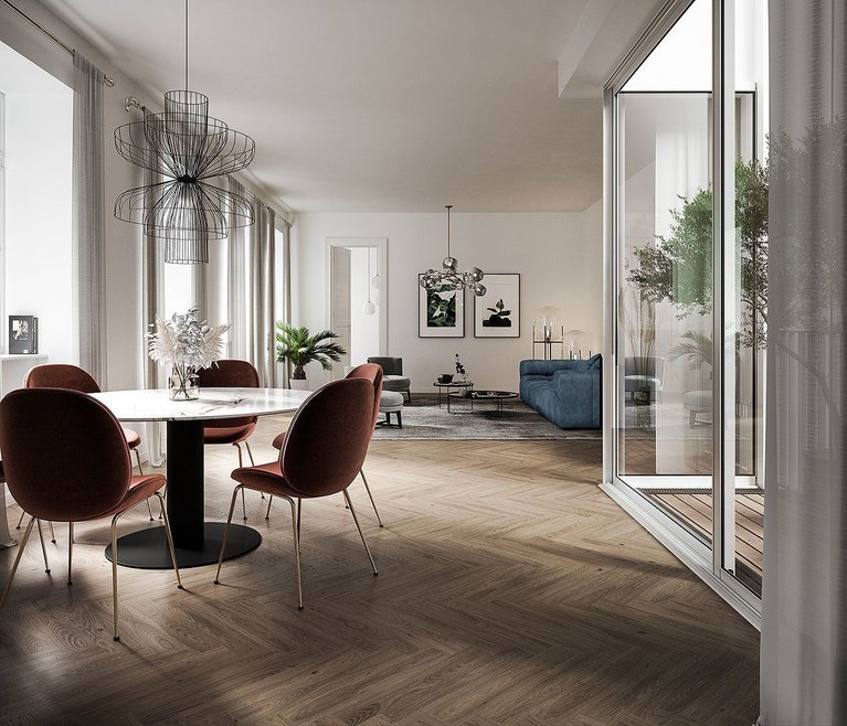 - Landhausdielen oder Fischgrätparkett aus hochwertiger Eiche
